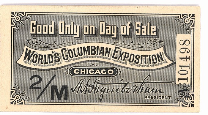 1893 World’s Columbian Exposition–Day of Sale Tickets